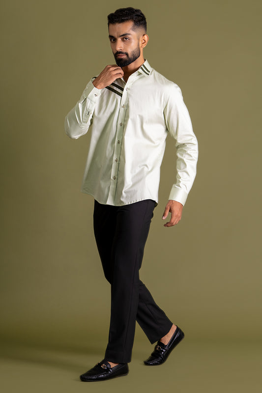 Trigonnal Front Panel Shirt With Dabka Work Detailing
