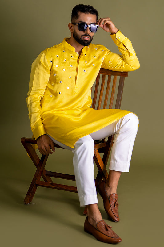 Classic Yellow With Mirror Embroidery Kurta