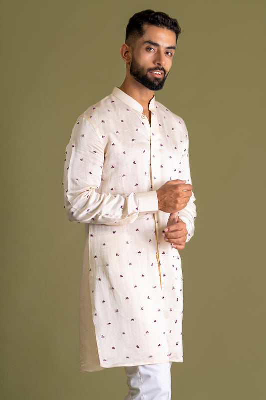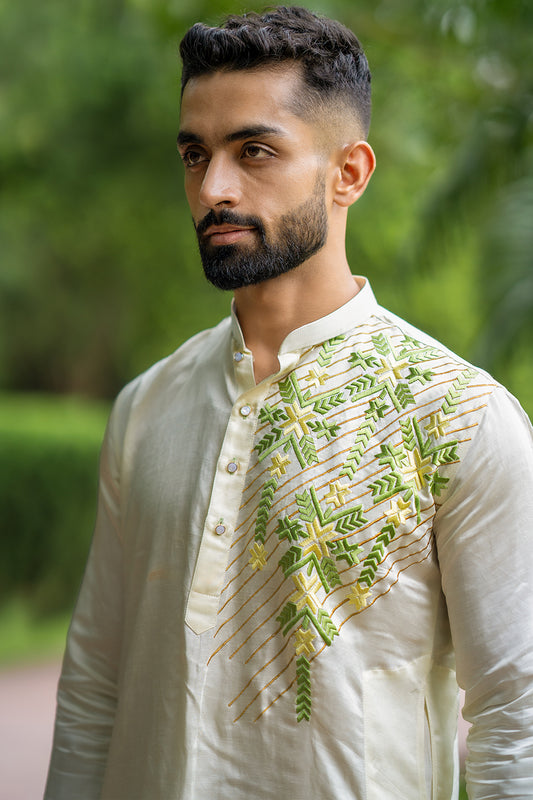 Ivory Kurta With Thread Work On One Side