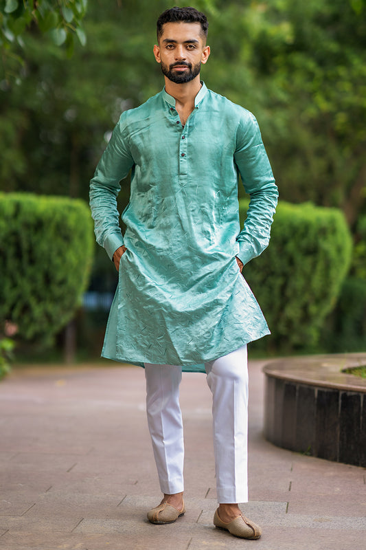Aqua Blue Kurta With Abstract Embroidery Detailing