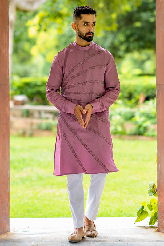 Abstract Lines Kurta With Ivory And Tone-On-Tone Embroidery