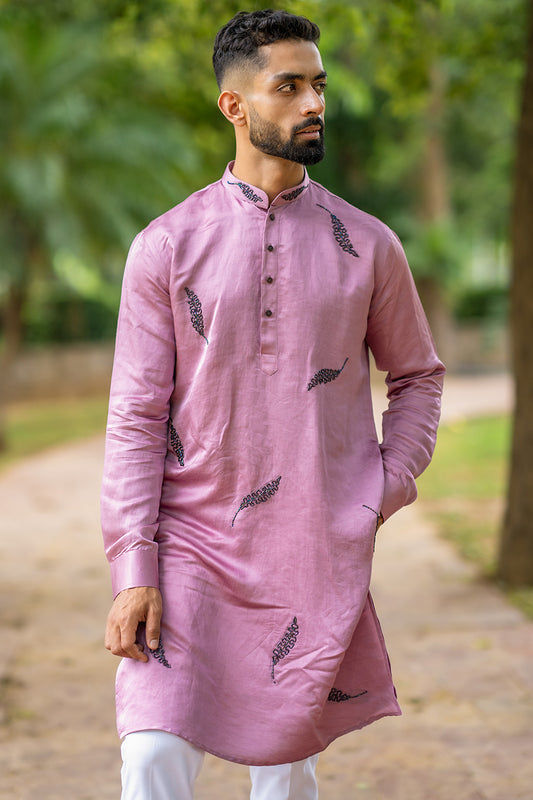 Linen Satin Kurta With Placement Threadwork